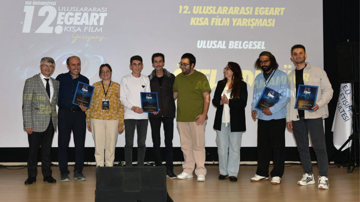 İZMİR(Ege Ajans)- Her yıl geleneksel olarak yapılan ve bu yıl 12’ncisi gerçekleştirilen Ege Üniversitesi EgeArt Kısa Film Yarışması’nda ödüller sahiplerini buldu. Türkiye Kültür Yolu Festivali kapsamında Kültür ve Turizm Bakanlığı Sinema Genel Müdürlüğü desteği ile gerçekleşen ve 3 bin 111 filmin başvurduğu yarışmada, çeşitli kategorilerde ödüller verildi. EÜ İletişim Fakültesi Konferans Salonunda yapılan ödül törenine EÜ Rektör Yardımcısı Prof. Dr. Mehmet Ersan, İletişim Fakültesi Dekanı Prof. Dr. Bilgehan Gültekin, EÜ Devlet Türk Musiki Konservatuvarı Müdürü Prof. Dr. Ali Maruf Alaskan, Sağlık, Kültür ve Spor Daire Başkanı Aysel Ildızlı, yarışma jüri üyeleri, akademisyenler ve öğrenciler katıldı.
